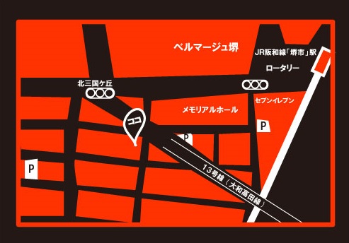 Map/地図 大阪府堺市堺区北三国ヶ丘町7-4-15072-228-7840JR阪和線「堺市駅」から徒歩5分※南海本線「堺駅」とお間違えのないようご注意ください。駐車場はお近くのコイン・パーキングをご利用ください。 共有: クリックして X で共有 (新しいウィンドウで開きます) X Facebook で共有するにはクリックしてください (新しいウィンドウで開きます) Facebook いいね 読み込み中…